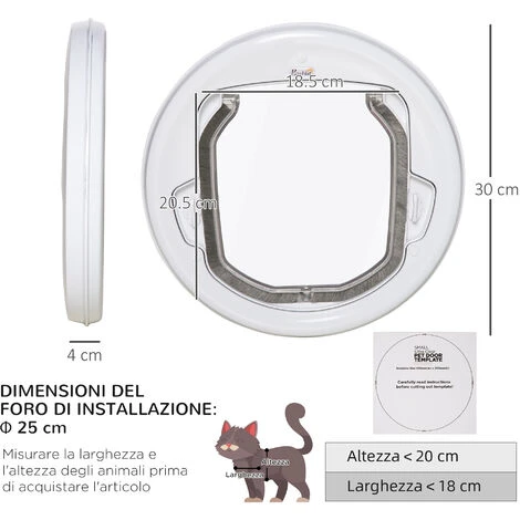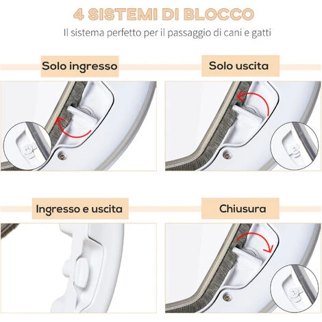 Lascia liberi i tuoi gatti di uscire di casa e rientrare quando vogliono con la gattaiola PawHut. Ha un pratico sistema di blocco che puoi impostare su 4 diverse opzioni (solo entrata, solo uscita, entrata e uscita, chiusura) e puoi installare lo sportello per gatti facilmente su vetro, rete e porte. Soddisfa la voglia di indipendenza dei tuoi gatti con questa porta basculante e regala loro tutta la libertà di esplorare gli ambienti esterni.