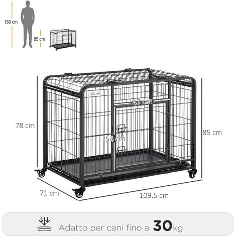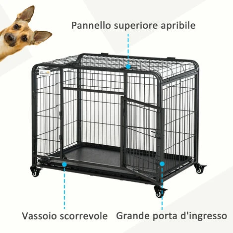 Il kennel per cani PawHut offre uno spazio comodo e sicuro per il tuo amico a 4 zampe. Realizzato con filo metallico forte e barre saldate alla struttura per una lunga durata. Facile da trasportare e riporre grazie al design pieghevole e salvaspazio. Le 4 ruote girevoli facilitano lo spostamento del trasportino per cani. Questo box è perfetto per tenere al sicuro i tuoi cani.