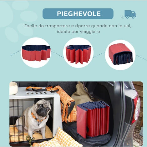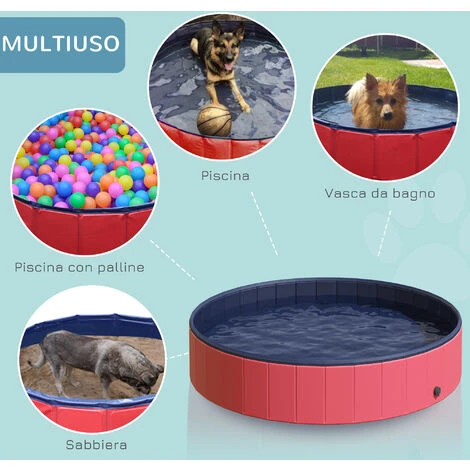 Questa piscina portatile è pensata apposta per i vostri amici a quattro zampe. La struttura è costituita da robusto legno e rivestito in PVC di alta qualità. Ha diverse funzioni: piscina per cani, vasca da bagno per cani, stagno all’aperto, vasca per i pesci. Grazie al suo design, non occupa tanto spazio quando viene piegata.