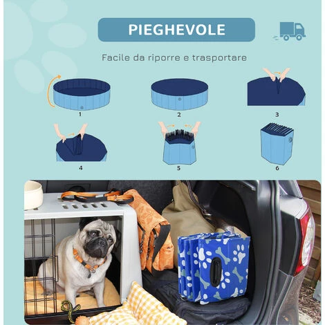 Anche il tuo amico a quattro zampe ha voglia di tuffarsi? Regalagli una piscina per cani tutta per lui! Questo modello progettato da PawHut una struttura in pannelli truciolari e un rivestimento in plastica dura, per resistere a tutti i suoi salti e alle sue corse sfrenate. La base è antiscivolo e puoi usarla tranquillamente in giardino o in terrazzo, e divertirvi insieme durante le giornate di sole.