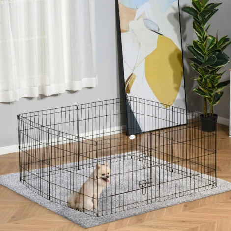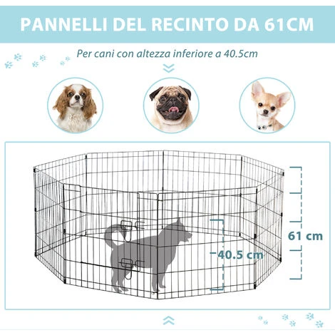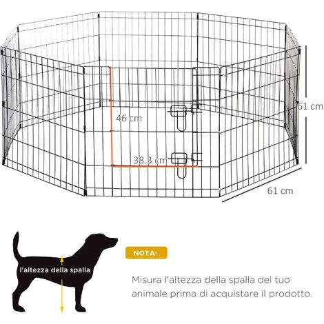 Recinto robusto per cuccioli realizzato in filo di ferro. Grazie all’elemento con porta, la mamma può entrare e uscire comodamente dal recinto, mentre i cuccioli, essendo alta la porta, non possono scappare. Ideale per ambienti interni o in giardino!