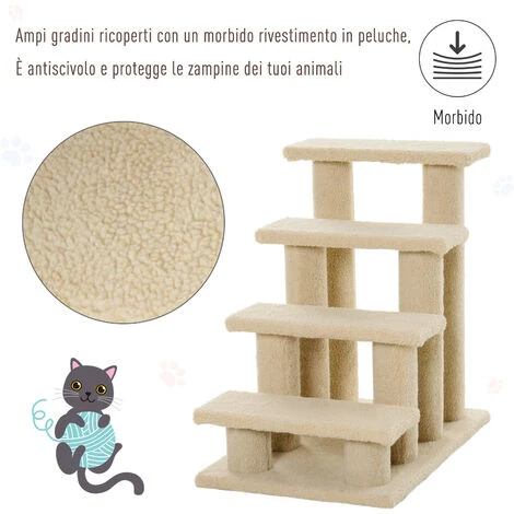 Il tuo cucciolotto ha bisogno di un aiutino per salire sul divano? Ecco qui una comodissima scaletta, progettata su misura per le sue esigenze! Perfetta per cani e gatti, sia cuccioli che anziani, ha 4 comodi gradini che aiuteranno il tuo amico a quattro zampe a salire sul letto o sulla poltrona. La struttura è rivestita in morbido peluche beige e può sostenere fino a 10 kg di peso.