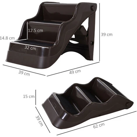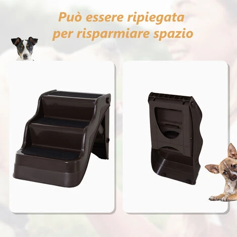 Questa scaletta PawHut per animali domestici può aiutare gli animali a raggiungere i loro posti preferiti senza difficoltà. Realizzata in plastica PP durevole. Occupa poco spazio quando non viene usata grazie al design pieghevole. Ideale per gatti o cani piccoli che hanno difficoltà a salire sul letto o sul divano. I bordi alti sui lati e la superficie dei gradini antiscivolo garantiscono la massima sicurezza.