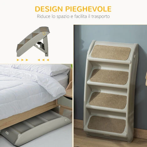 Il tuo cagnolino non riesce a salire sul divano? Offrigli una comoda scaletta su misura per lui! PawHut è un brand sempre in cerca di nuove soluzioni per migliorare la vita dei tuoi amici a quattro zampe, e ha realizzato questa pratica struttura a 4 gradini per aiutare il tuo animale domestico a salire comodamente sul divano o sul letto. Perfetta per cuccioli o cani di piccole dimensioni, è la soluzione ideale per rilassarsi insieme!
