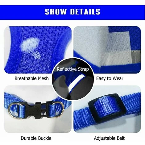 Suggerimenti caldi: misura accuratamente le dimensioni del tuo animale domestico prima di effettuare un ordine! Se il petto del cane è tra le due taglie, si consiglia di scegliere la taglia più grande.NO PULL & NO CHOKE – L’imbracatura ha un gancio in lega sul retro. Puoi attaccare il guinzaglio per controllare il cucciolo mentre cammini, corri, fai shopping e ti alleni, puoi goderti la libertà e la sicurezza.,Sicurezza: il cinturino riflettente assicura che i cani siano visibili dall’auto nella notte buia e in condizioni di scarsa illuminazione. Confortevole: il tessuto anteriore è in poliestere traspirante e confortevole, il cane non si sente soffocante. Il tessuto sul rovescio è delicato e morbido e i fili di tessitura sono densi e non appiccicosi al pelo del cane.,Facile da indossare: la cinghia regolabile può adattarsi meglio al corpo del cane. Puoi allacciare la fibbia dopo aver fissato il velcro, che è sicuro e stabile. Informazioni sul prodottoTaglia: L (confezione da 1) | Colore: blu Perché scegli la nostra imbracatura per cani? Facile da controllare all’aperto e anti strappo. Le strisce riflettenti ad alta luce possono proteggere meglio la sicurezza del cane in condizioni di scarsa illuminazione e di notte buia. La tracolla regolabile si adatta perfettamente al corpo del cane. Realizzato in poliestere di alta qualità, morbido rete imbottita nell’imbracatura. È così facile da indossare e da togliere regolando il velcro e la fibbia a sgancio rapido. circonferenza, si prega di consentire una tolleranza di 1 – 3 cm. Se il pelo del tuo animale domestico è lungo e rigoglioso, ti preghiamo di riservare 1 – 3 cm di spazio quando scegli la taglia. Se il tuo animale sta crescendo, ti suggerisco di scegliere una taglia più grande per garantire il suo comfort per il futuro .