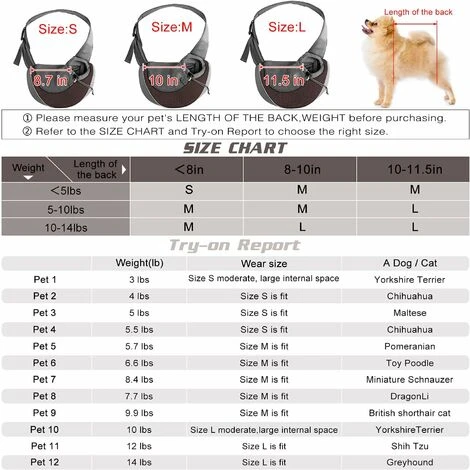 Dimensioni: 40*13*26cm è adatto per cani sotto i 10 kg. Si adatta da piccola a persona di grandi dimensioni. Realizzato in pelle e rete, morbido, traspirante e duratoSuper ampia tracolla imbottita e gancio borchiato, facile da regolare, sicuro e comodo per il tuo piccolo animale domestico da stareDesign a mani libere, custodia compatta, adatto per animali domestici di piccola taglia, Come Gatti, Minlature Pinscher, Chihuahua, Yorkshire Terrier, Pomeranian, Mini barboncino, Miniature Schnauzer, Teddy coppe, ect.