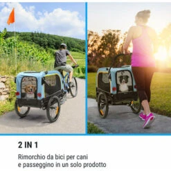 Klarfit Corgi 2-in-1 Dog Trailer & Stroller 600D Oxford Tubo D’acciaio Bandierina Segnaletica