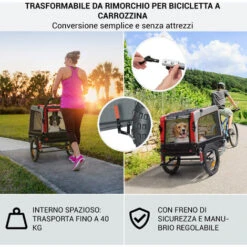 Klarfit Husky Vario – Rimorchio E Passeggino Per Cani 2 In 1, Ca. 240 L, Tela Oxford 600D