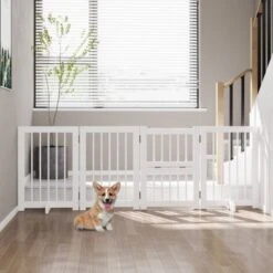 PawHut Cancelletto Di Sicurezza Pieghevole Per Cani E Bambini In Legno Di Pino Bianco, 215x75cm