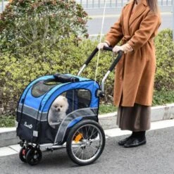 PawHut Passeggino 2 In 1 Per Cani E Rimorchio Bici, Ruote Catarifrangenti E Bandierina Blu