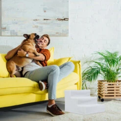 PawHut Scaletta Per Cani E Gatti Pieghevole Con 3 Gradini Antiscivolo In PP, 49x38x38 Cm, Beige