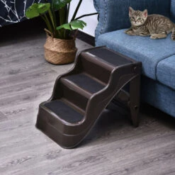 PawHut Scaletta Per Cani Pieghevole Con 3 Gradini Antiscivolo In PP, 49×38×38cm, Marrone