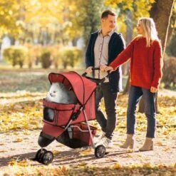PawHut Passeggino Per Cani, Carrello Per Animali Domestici, Carrello Carrozzina 75 X 45 X 97cm Rosso