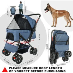 PawHut Passeggino Per Cani, Carrello Carrozzina Per Animali Domestici, Blu, 75 X 45 X 97cm