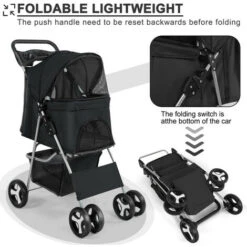 PawHut Passeggino Per Animali Domestici Pieghevole, Carrello Per Cani, Grigio, 75 X 45 X 97cm