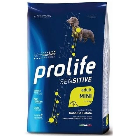 Prolife Sensitive Rabbit & Potato è un alimento completo formulato per le esigenze nutrizionali del cane adulto che presenta sensibilità digestive, articolari o cutanee.