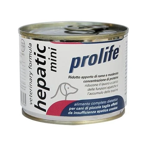 Prolife Hepatic Mini è l’alimento completo dietetico specifico per cani di piccola taglia affetti da insufficienza epatica cronica. Il ridotto apporto di rame aiuta a ridurne l’accumulo al livello epatico. Le proteine di elevata qualità, i carboidrati e i grassi altamente digeribili riducono il lavoro a carico delle funzioni epatiche e l’accumulo delle tossine. Le vitamine A ed E svolgono un’azione antiossidante che aiuta a limitare il danno ossidativo epatocellulare.