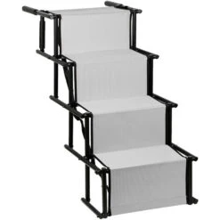 Il materiale è facile da pulire (e impermeabile). Il doppio rinforzo del gradino rende le scale adatte ai cani anziani e agli animali domestici fino a 75 kg.