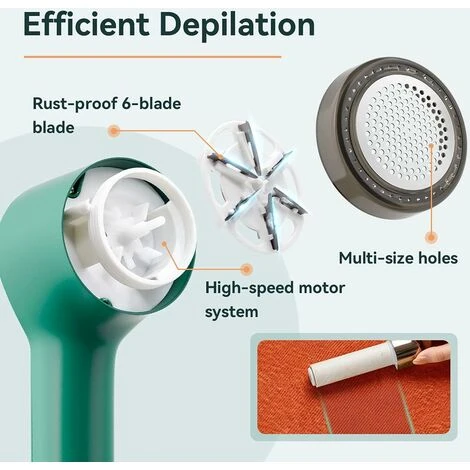 【Efficiente e durevole】 Questo rasoio per pelucchi è dotato di un sistema motore ad alta velocità e di una lama in acciaio inossidabile a 6 lame, molto più veloce del comune dispositivo di rimozione dei pelucchi di muggine sul mercato. Rifinirà il tuo rasoio per pelucchi, cappotti e cuscini, questo tagliapelucchi può rinITescare i tuoi vestiti in pochi secondi e farti risparmiare un sacco di tempo. rullo per pelucchi all’interno, il rullo per pelucchi può raccogliere le palline di pelucchi sul tessuto, all’aperto quando il tuo rasoio per pelucchi si esaurisce per continuare a lavorare per te, puoi installare un rullo per pelucchi con dispositivo di rimozione dei pelucchi per usarlo.