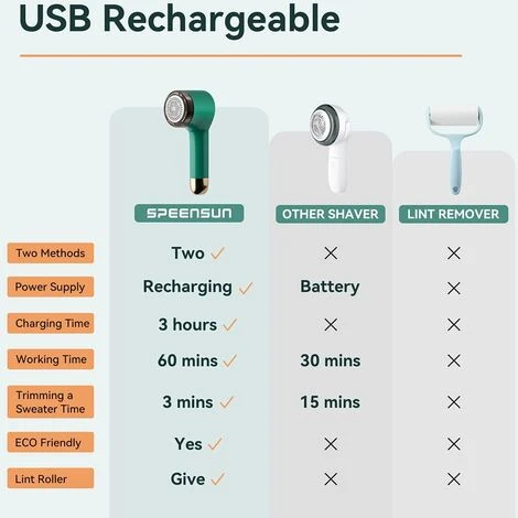 【Vincitore del test del rasoio per pelucchi ricaricabile tramite USB】 Il rasoio anti pelucchi è ricaricabile, non richiede batteria, ecologico e fa risparmiare denaro.La carica completa elettrica del rasoio per pelucchi richiede circa 3 ore e l’orario di lavoro è fino a 60 minuti. Basta collegare il cavo a un caricabatterie, un power bank o persino un laptop e accendere il rasoio per pelucchi.