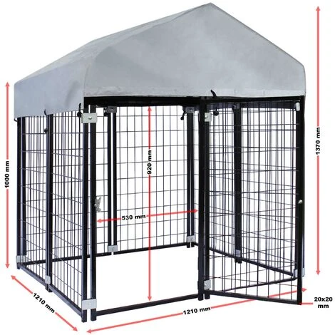 Recinto per cani in acciaio con copertura 121x121x137 cm da esterni