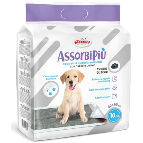 10 tappetini Assorbipiù assorbenti odour control al carbone attivo con angoli adesivi per cani 60x60cm