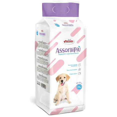 Tappetini assorbenti per cani Confezioni da 40 tappetini 60 x 60 Con strisce adesive per il fissaggio al pavimento che ne permettono un posizionamento più stabile a terra Sostituiscono il tradizion …
