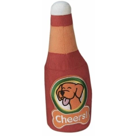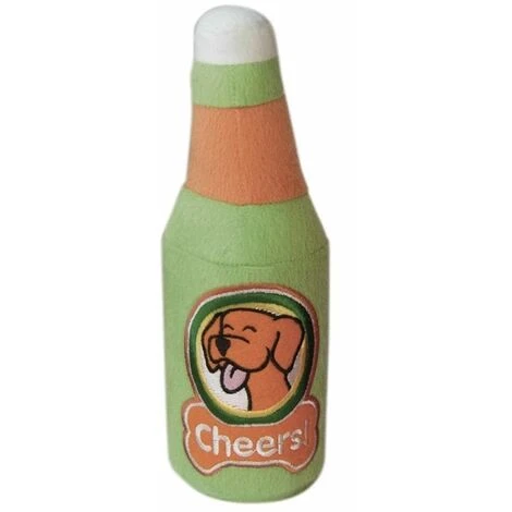 Simpatico gioco a forma di bottiglia per cani con scritta Cheers.