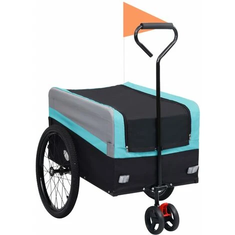 Questo funzionale rimorchio da carico per bici XXL 2 in 1 può essere utilizzato come un carrello o un trasportino per biciclette in pochi secondi ed è utile per il trasporto a mano o o attaccato a una bicicletta o a un veicolo. Il rimorchio ha un robusto telaio in acciaio ed è realizzato in tessuto oxford, che lo rende resistente e di facile manutenzione. Il carrello ha una sospensione per una guida fluida e la ruota anteriore può ruotare di 360 gradi durante il movimento. Il giunto rotante di sicurezza assicura che il rimorchio rimanga in posizione verticale se la bicicletta cade. Il carrello ha un attacco a sgancio rapido per un facile fissaggio a una bicicletta o un veicolo. Inoltre, ha una struttura pieghevole per un facile stoccaggio e trasporto.