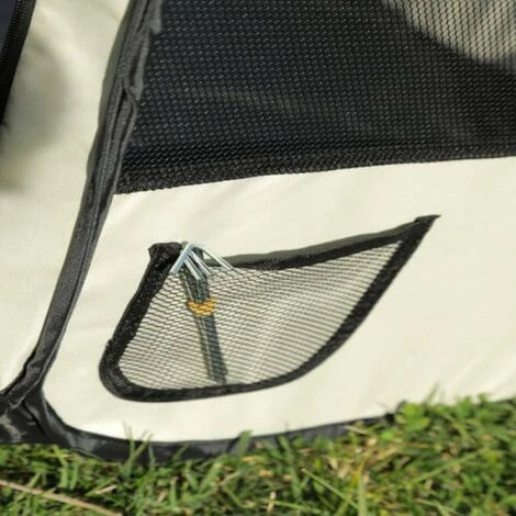 - Dispone di una tasca porta oggetti ideali per collari, croccantini, spazzola o giochi In dotazione 4 picchetti in metallo cromato per il fissaggio a terra