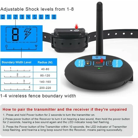 Pratico design wireless: non c’è bisogno di seppellire i cavi, risparmio di tempo e senza problemi. Il trasmettitore può essere regolato su 8 intensità, puoi trovare il livello giusto per il tuo cane.