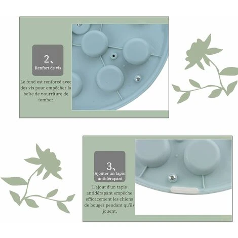 La base di questo distributore di cibo è fissata con viti di fissaggio per evitare il fenomeno della caduta degli alimenti. Quindi questo giocattolo è più resistente e divertente. Inoltre, questo giocattolo è dotato di un cuscinetto antiscivolo sulla base per evitare che il giocattolo scivoli quando l’animale si diverte.