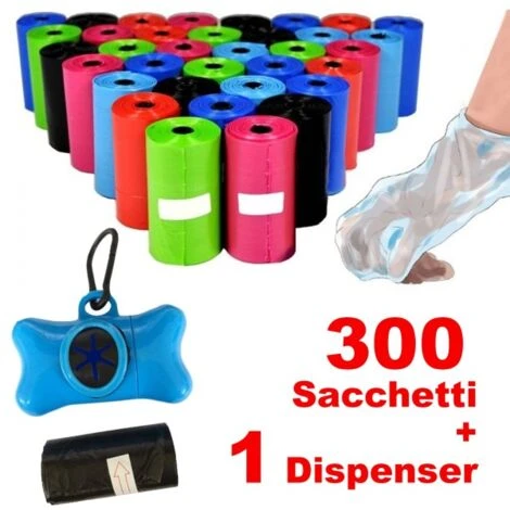 Trade Shop – 300 Sacchetti Igienici Per Bisogni Escrementi Cani Raccolta Feci Con Dispenser