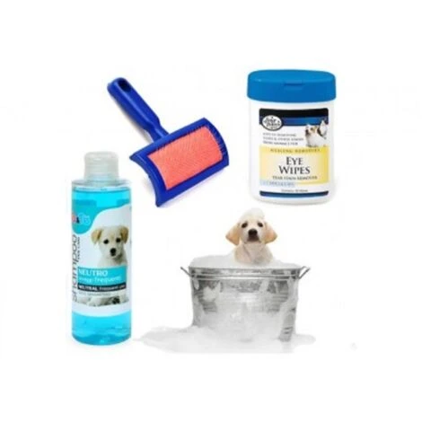 Trade Shop – Kit Pulizia Cani Shampoo Neutro Salviettine Spazzola Cardatore Lavaggi Frequenti