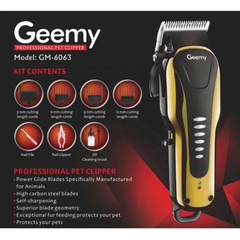Tosatrice Per Animali Gm 6063il Taglia Peli Gemei Gm-6063 è Adatto Sia Per Uso Domestico Che Per Saloni Professionali. Progettato Per Toelettatura Di Animali Domestici. Se Hai Un Cane O Un Gatto In Casa, Allora Un Tagliapeli Diventerà Semplicemente Uno Strumento Indispensabile. Con Il Suo Aiuto, Puoi Facilmente Prenderti Cura Del Tuo Animale. Lo Styler è Ottimo Per La Toelettatura Di Qualsiasi Cane. Con Il Suo Aiuto, Il Tuo Animale Domestico Acquisirà Un Aspetto Completamente Diverso. Dopotutto, Un Animale Ben Curato La Dice Lunga Sul Suo Proprietario. Taglio Peli Di Alta Qualità, Facilità D’uso, Le Lame Sono Facili Da Pulire, Facilmente Rimovibili. La Macchina Ha Un Cavo Sufficientemente Lungo, Che Può Svolgere Un Ruolo Importante Quando Si Lavora Con Un Animale. Ora Il Tuo Animale Domestico Avrà Sempre Un Aspetto Al 100%.caratteristiche :per Tutte Le Razzele Lame Sono Anallergiche E Realizzate In Acciaio Di Alta Qualitàdispone Di Un Pulsante (on/off) Con Spia Led Per L’accensione E La Ricarica.batteria Agli Ioni Di Litio Con Ricarica Rapida (4-6h) Da Utilizzare Durante (1-2h).include Cavo Di Ricarica Con Adattatore Per Presa Di Corrente (110v).parrucchiere Con 4 Livelli Di Taglio + La Funzione Di Rasatura Zero.include 4 Guide Di Taglio N. 1 (3 Mm) N. 2 (6 Mm) N. 3 (9 Mm) N. 4 (13 Mm).include Un Piccolo Kit Di Forbici Speciali Per Tagliare Gli Artigli E Una Lima Di Metallo.è Sensibile Su Qualsiasi Superficie Corporea Di Cani E Gatti.design Ultraleggero Di Facile Presa E Pratica Pulizia Batteria Ricaricabilecontenuto:1 X Macchina Ricaricabile4 X Guide Di Taglio Intercambiabili1 Cavo Di Ricarica Da 110 V1 Olio Lubrificante1 Pettine1 X Tagliaunghie1 X Lima In Metallo1x Manuale Utente