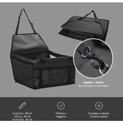 Il seggiolino è inoltre dotato di un comodissimo scomparto con zip per giocattoli, guinzagli o qualsiasi accessorio utile al vostro animale.