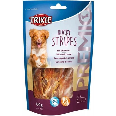 PREMIO Ducky Stripes con petto d’anatra carne 90 % ricchi di proteine in confezione richiudibile L’offerta di snack TRIXIE è molto ampia – scegli tra la qualità Premio con ingredienti selezionati di …