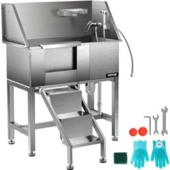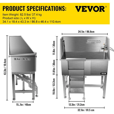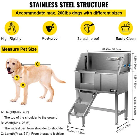 - Vasca in Acciaio Inossidabile: Dimensioni del prodotto: 34,2″ x 18,4″ x 43,3″ / 86,8 x 46,7 x 110,4 cm; Adatta per animali domestici di lunghezza massima: 34″ / 86,4 cm. Può ospitare cani di diverse dimensioni (max.220 libbre). La vasca da bagno per animali domestici è costruita con acciaio inossidabile 201, che è indeformabile, antiruggine, antigraffio e abbastanza robusto per un uso prolungato. Inoltre, la resistente vasca da bagno per animali domestici in acciaio inossidabile è di facile manutenzione e pulizia.
