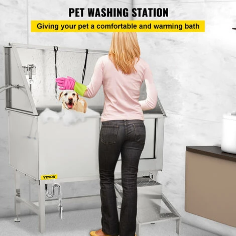 La stazione di lavaggio per animali domestici è realizzata in acciaio inossidabile 304, che consente alla vasca di toelettatura di contenere fino a 220 libbre di carico. Con la struttura robusta, puoi fare il bagno per la tranquillità del tuo animale domestico.