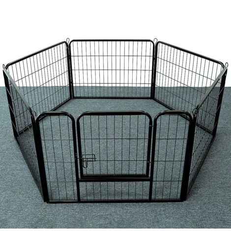 2. I pannelli sono collegati da chiodi. Aggiungendo o rimuovendo pannelli,il parco per cani può essere costruito in modo flessibile in diverse forme come esagoni,quadrati e rettangoli.