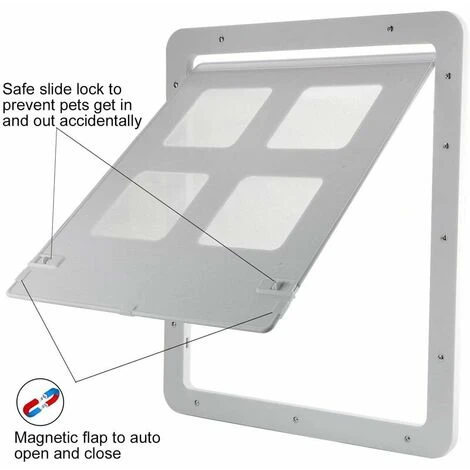 - ? BLOCCO E BLOCCO AUTOMATICI — Porta per animali domestici con chiusura a ribalta magnetica, il magnete integrato può mantenere la porta chiusa automaticamente quando il tuo gatto o cane esce.