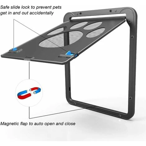 Dai al tuo animale domestico un passaggio indipendente: c’è un magnete nella parte inferiore del telaio della porta, la porta del cancello dell’animale domestico può chiudersi automaticamente dopo che l’animale ha attraversato la porta. Due chiusure scorrevoli nella parte inferiore della patta ti aiutano a bloccare il cancello del cane e assicurano che il tuo animale domestico sia lasciato all’interno incustodito.